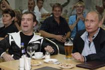 俄總統(tǒng)與總理一起看球