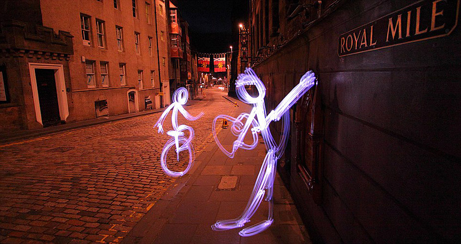 攝影師Michael Bosanko在愛(ài)丁堡皇家大道拍攝的名為“幽靈的表演”的光涂鴉照片。