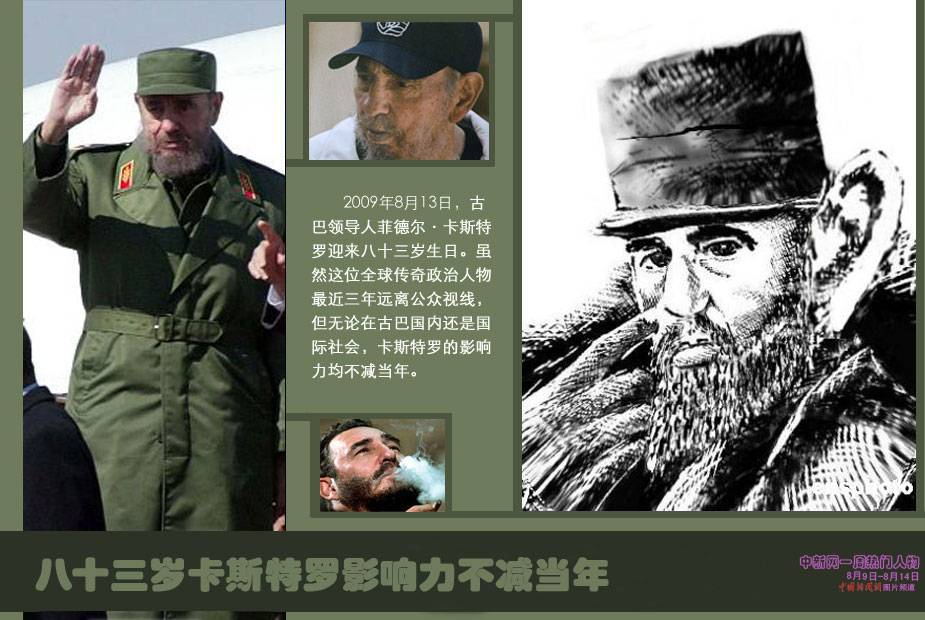 中新網(wǎng)本周熱點人物之菲德爾·卡斯特羅——卡斯特羅一九二六年生于古巴奧爾金省比蘭鎮(zhèn),一九四九年加入古巴共產(chǎn)黨。一九五九年率領起義軍推翻巴蒂斯塔獨裁政權(quán),成立革命政府,出任政府總理和武裝部隊總司令,自此成為古巴政壇“一號人物”,直至二00六年因身體原因不再坐鎮(zhèn)一線。