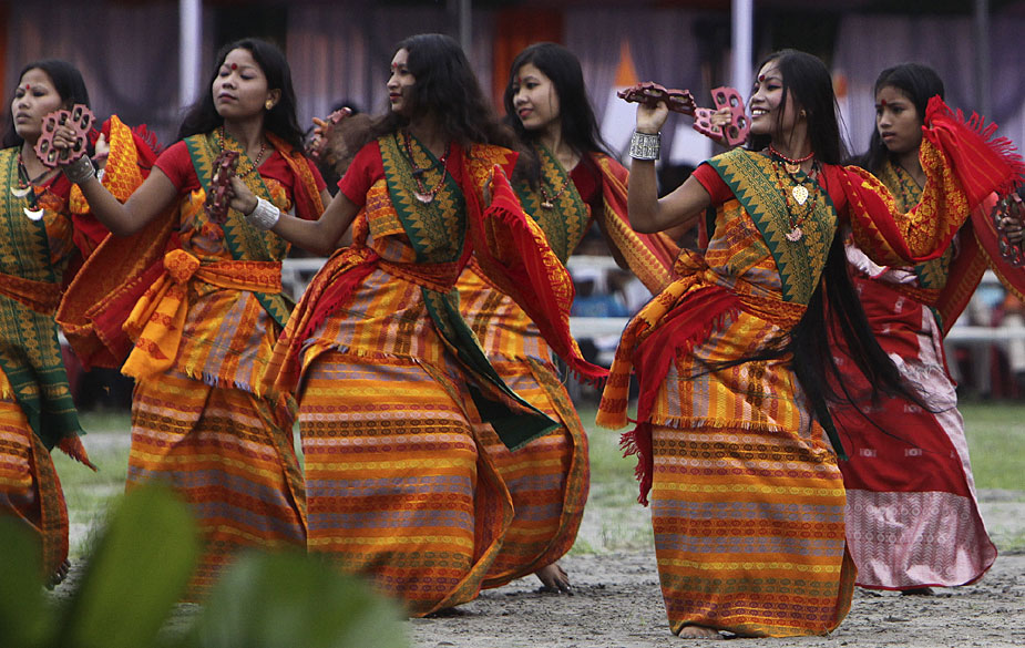 圖為印度民眾跳起歡樂(lè)的舞蹈,慶祝獨(dú)立62周年。