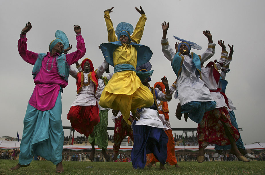 圖為印度民眾跳起歡樂(lè)的舞蹈,慶祝獨(dú)立62周年。