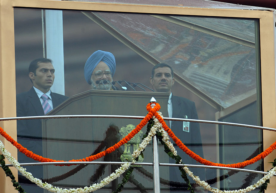 圖為印度總理辛格在慶祝儀式上發(fā)表講話。