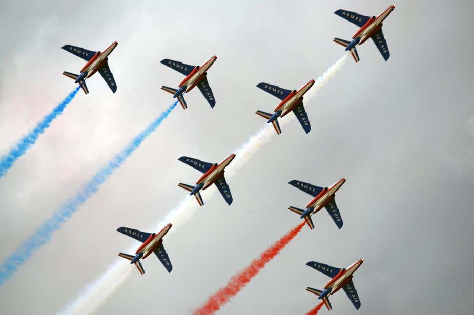 8月21日,在俄羅斯茹科夫斯基市舉行的第九屆國際航空航天展覽會上,法國著名的“法蘭西巡邏兵”飛行表演隊進(jìn)行了精彩的飛行表演。