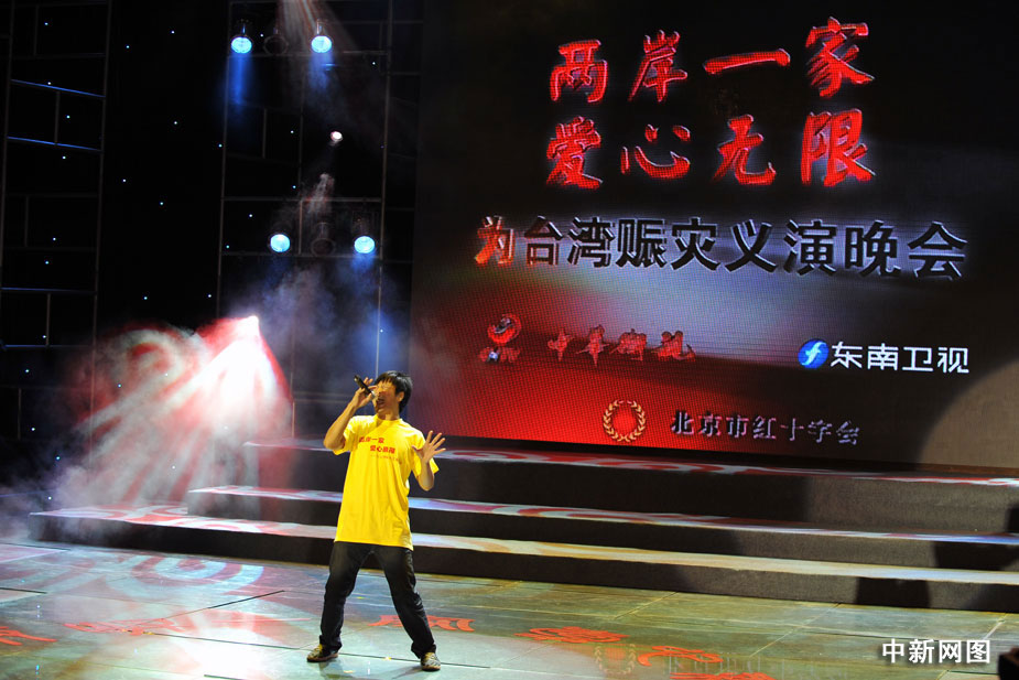 8月22日晚,北京舉行“兩岸一家 愛心無限”為臺灣同胞賑災(zāi)義演晚會,大陸和臺灣演藝界明星登臺為臺灣災(zāi)區(qū)同胞共獻愛心,晚會臨近結(jié)束時共收到各界捐款3000多萬元。中新網(wǎng)記者 金碩 攝