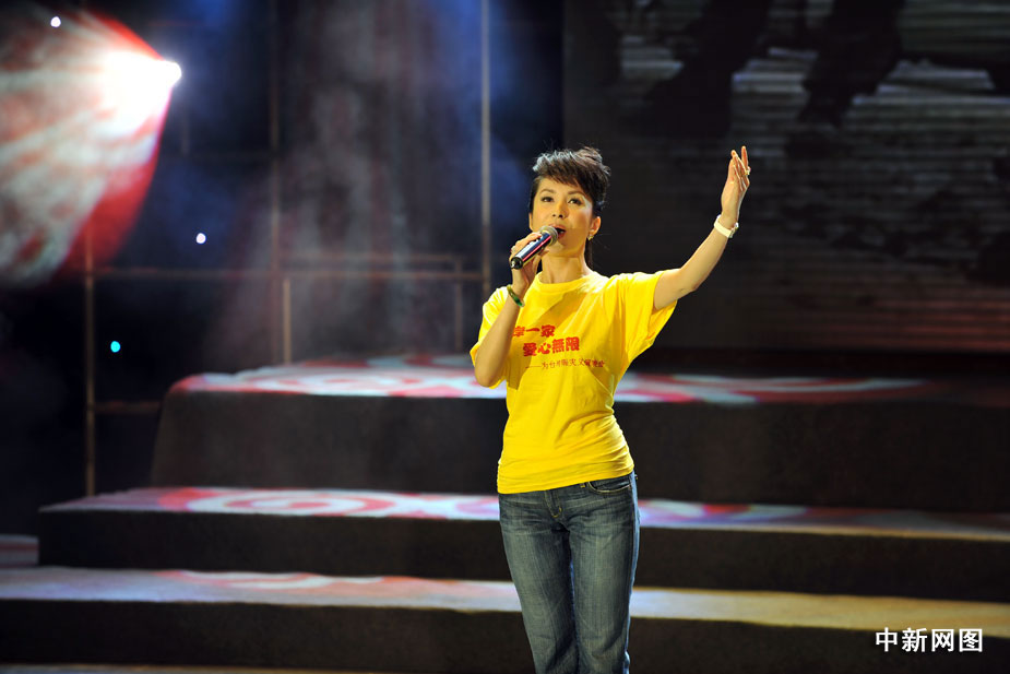 圖為湯燦在賑災(zāi)義演晚會(huì)上演出。