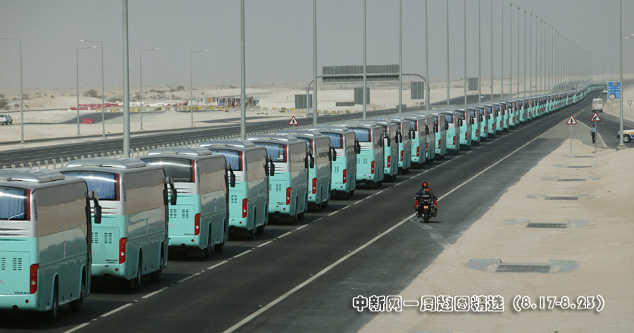 8月21日,325輛公交車在卡塔爾多哈的一條公路上列隊(duì)行駛,打破了今年1月德國(guó)119輛公交車創(chuàng)下的吉尼斯世界紀(jì)錄。點(diǎn)擊觀看詳細(xì)內(nèi)容