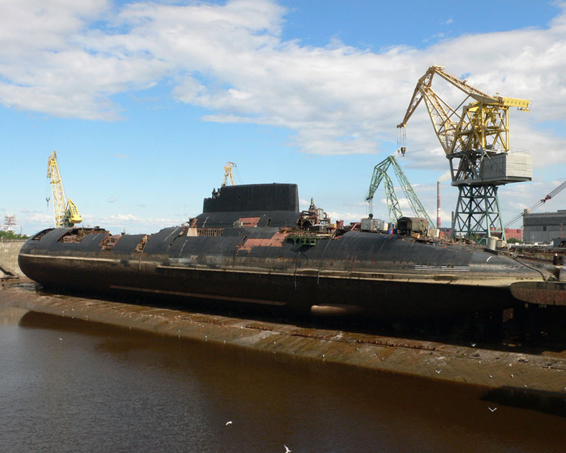 被拆解的核潛艇屬于臺風級戰(zhàn)略核潛艇,編號TK13。2008年7月,該艇被運抵俄羅斯北部北德文斯克的茲韋茲多奇卡(Zvezdochka)船廠。(環(huán)球網(wǎng))