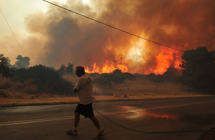 據(jù)英國媒體24日報道,希臘雅典東北部40公里外城郊上周五開始發(fā)生森林大火,由于火勢尚未受到控制,濃煙威脅附近數(shù)個城鎮(zhèn)。據(jù)悉當(dāng)前至少上萬人逃離家園避難。