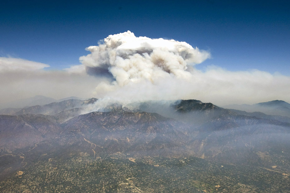 從遠(yuǎn)處看,從火災(zāi)現(xiàn)場升起的煙塵好像核彈爆炸產(chǎn)生的“蘑菇云”一般。