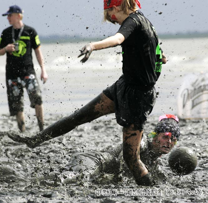 德國(guó)北部海邊小鎮(zhèn)Brunsbuettel的泥灘上進(jìn)行一場(chǎng)別開生面的泥地足球賽。圖片來源:中國(guó)新聞網(wǎng)