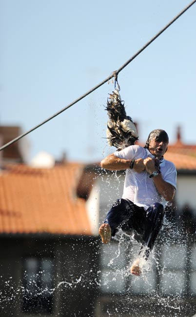 9月6日,西班牙巴斯克地區(qū)舉行傳統(tǒng)“鵝日”活動(dòng)。人們用繩子將一些死鵝吊在空中,狂歡者跳起猛扯鵝頭,看誰能取下。