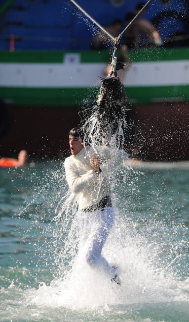 9月6日,西班牙巴斯克地區(qū)舉行傳統(tǒng)“鵝日”活動(dòng)。人們用繩子將一些死鵝吊在空中,狂歡者跳起猛扯鵝頭,看誰(shuí)能取下。