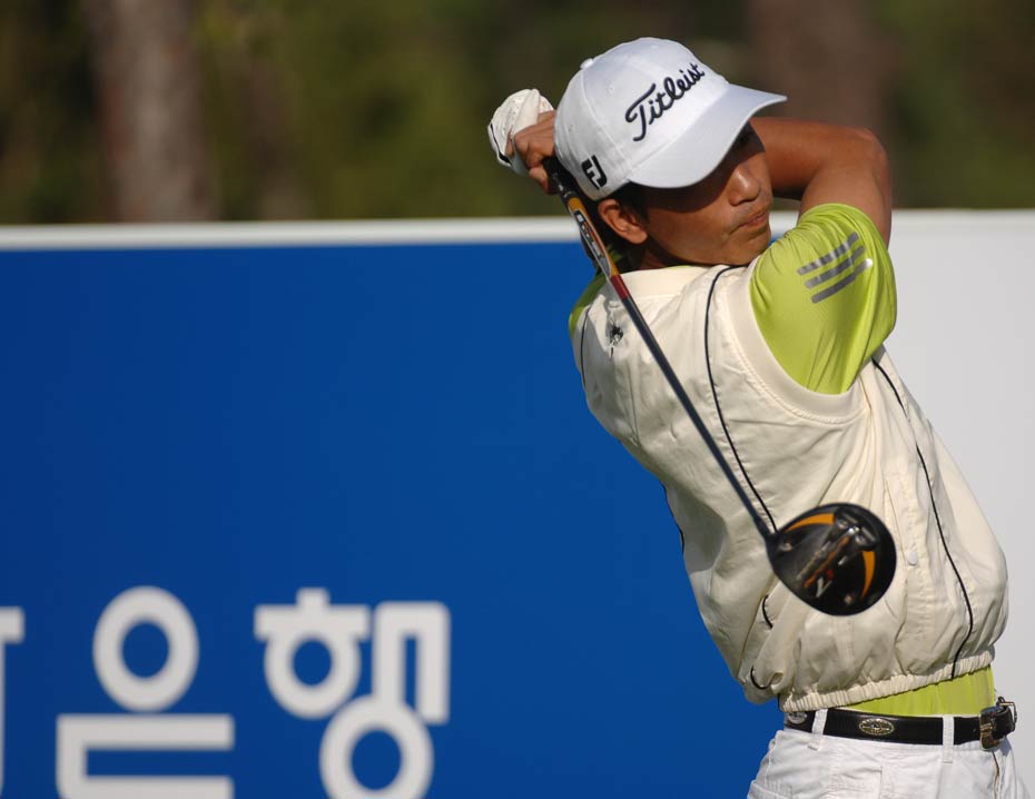 中新網(wǎng)9月24日電 2009“韓國KEB銀行”中韓職業(yè)高爾夫球巡回賽韓國站于今天在韓國OSTAR高爾夫球俱樂部正式開桿,共有133名球員將進行為期4天的角逐,其中有47名球員代表中國參賽,包含7名中國高爾夫球業(yè)余國家隊選手和3名韓籍球員。冠軍將獲得80,000,000韓幣和一座冠軍獎杯。圖為選手們上陣第一天揮桿開打的場面。