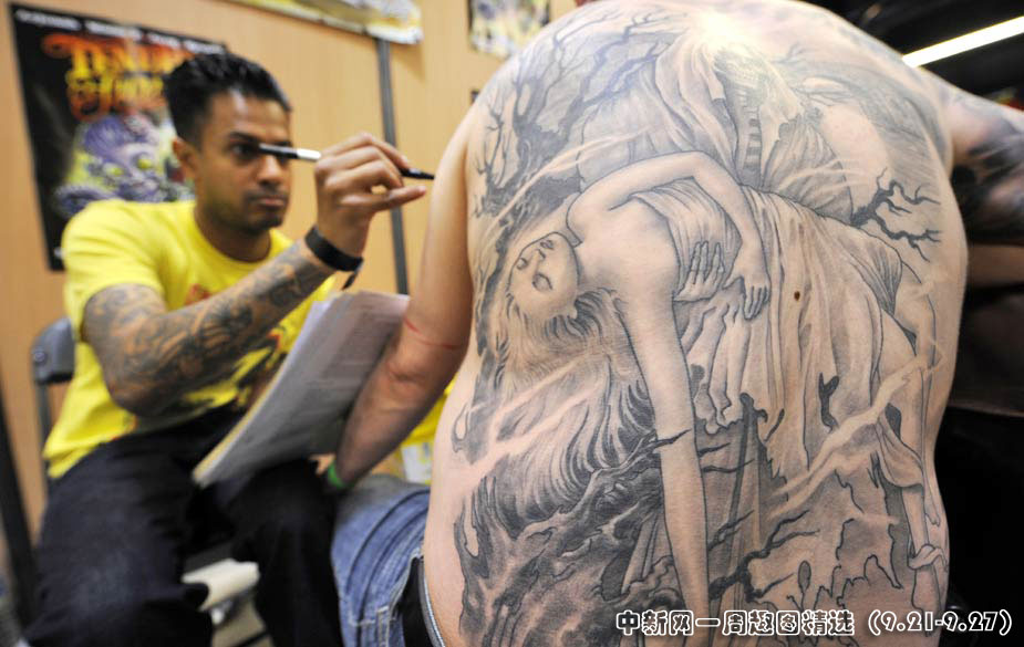 法國巴黎9月20日舉行“紋身藝術(shù)節(jié)”,吸引了成百上千紋身藝術(shù)大師到場獻藝。圖片來源:中國新聞網(wǎng)