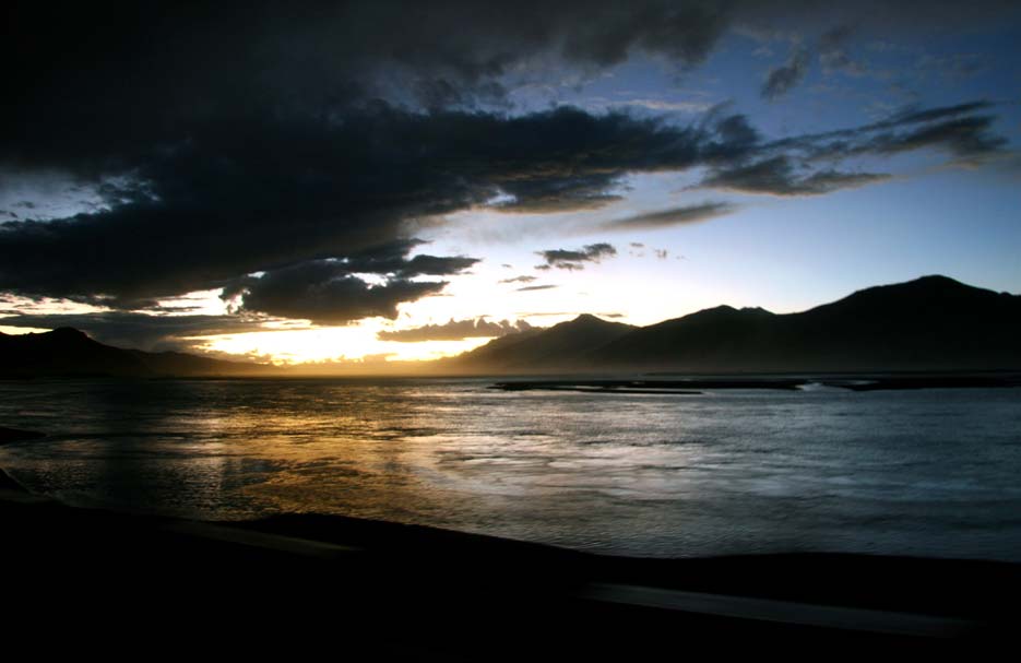 圖為從山南到拉薩的路上見到的夕陽下的雅魯藏布江。