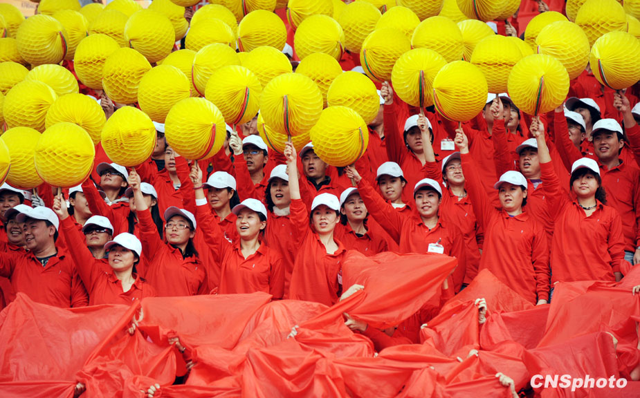 9月27日,“新中國 新沈陽”——沈陽市慶祝中華人民共和國成立60周年群眾歌詠大會在沈陽市鐵西體育場舉行。歌詠大會上,來自各行各業(yè)的代表組成上百個觀眾方陣,三萬市民齊唱《歌唱祖國》等耳熟能詳?shù)慕?jīng)典歌曲喜迎國慶。 中新社發(fā) 羅瀾 攝