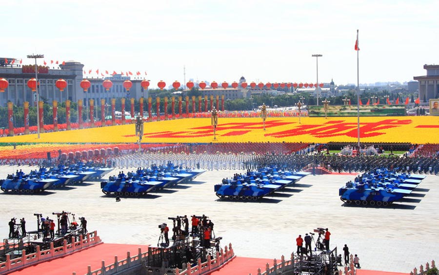 國(guó)慶60周年閱兵10月1日上午在天安門廣場(chǎng)成功舉行。由人民解放軍、武裝警察部隊(duì)和民兵預(yù)備役部隊(duì)8000余名官兵組成的受閱方陣接受檢閱。(京友/CFP)