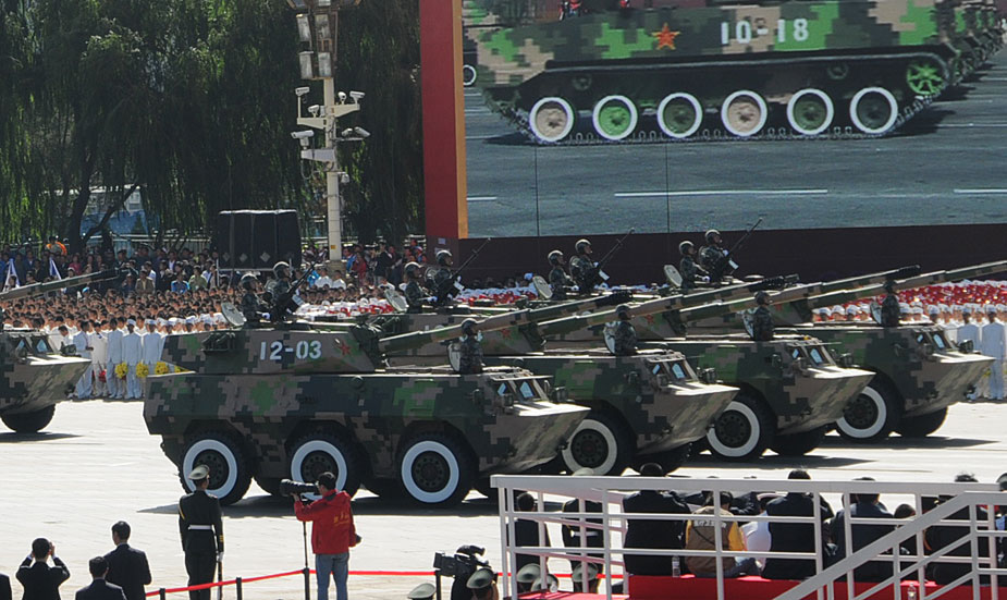 2009年10月1日,中華人民共和國成立60周年慶祝大會(huì)在北京天安門廣場舉行。圖為輪式自行突擊炮方隊(duì)。中新網(wǎng)記者 攝