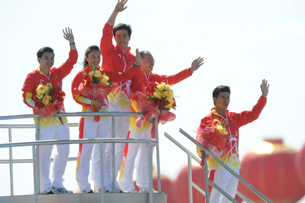 劉翔李寧亮相彩車(chē)