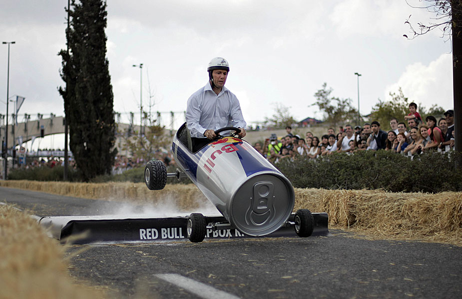 50輛“肥皂盒車”10月7日參加了耶路撒冷舉行的“肥皂盒車”趣味競賽。賽道設置在市中心一條大街的一段斜坡上,比賽者駕駛各種千奇百怪的賽車從起點一路滑下。圖片來源:中國新聞網(wǎng)