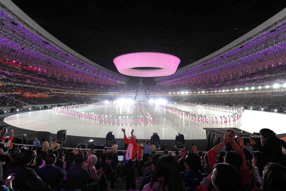 十月十六日晚,中華人民共和國第十一屆運動會在山東濟南奧體中心隆重開幕。圖片來源:中國新聞網(wǎng)