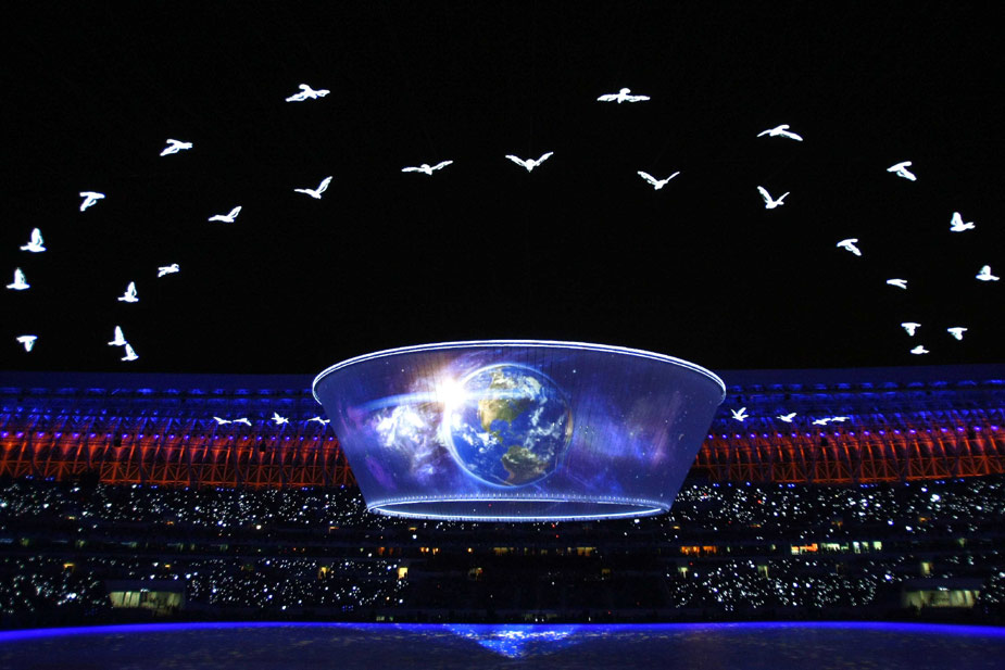 十月十六日晚,中華人民共和國第十一屆運(yùn)動(dòng)會(huì)在山東濟(jì)南奧體中心隆重開幕。中新社發(fā) 陳文 攝