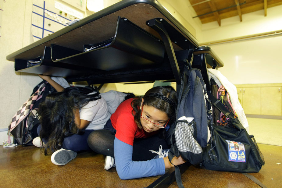 周四(10月15日),超過一千萬加州居民參加了美國(guó)有史以來最大地震演習(xí),以紀(jì)念舊金山大地震二十周年。圖片來源:中國(guó)新聞網(wǎng)