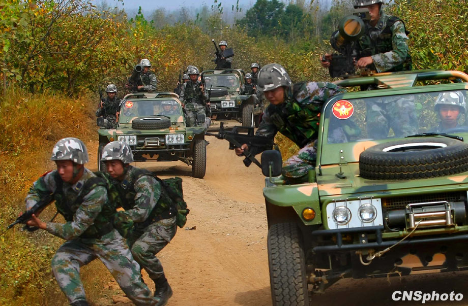 解放軍濟(jì)南軍區(qū)“前鋒-2009A”軍事演習(xí),將于10月21日在某合同戰(zhàn)術(shù)訓(xùn)練基地舉行,參加演習(xí)部隊(duì)10月20日組織戰(zhàn)前動(dòng)員。中新社發(fā) 宋吉河 攝