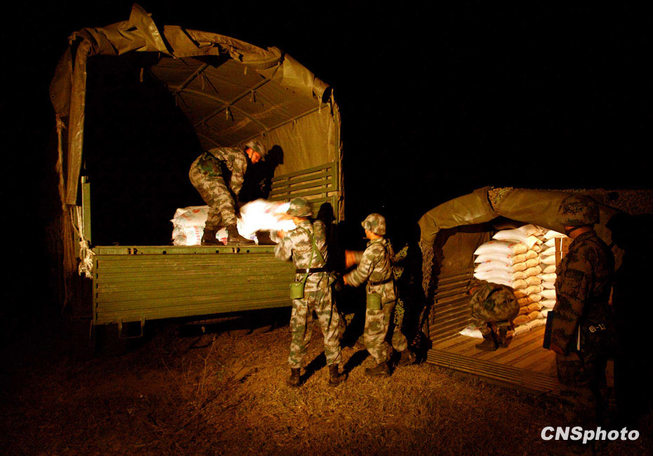 當(dāng)晚國防大學(xué)防務(wù)學(xué)院、空軍指揮學(xué)院的外軍學(xué)員,以及英國、以色列、土耳其、巴基斯坦等國軍事觀察員親臨現(xiàn)場觀摩了后勤保障戰(zhàn)斗準(zhǔn)備、自行榴彈炮占領(lǐng)陣地、裝甲車輛“摸黑”開進(jìn)等戰(zhàn)斗要素。圖為后勤部隊軍糧夜間運(yùn)送。中新社發(fā) 宋吉河 攝