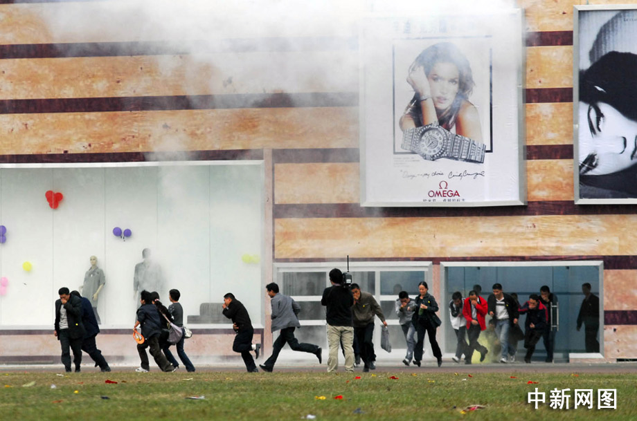 首先進行演練的是處置化學(xué)恐怖襲擊事件。為制造混亂恐慌,影響重慶市安全穩(wěn)定大局,某恐怖組織派出的2名恐怖分子在重慶先鋒百貨商場投放了化學(xué)毒劑,各應(yīng)急救援力量奉命進行緊急處置。