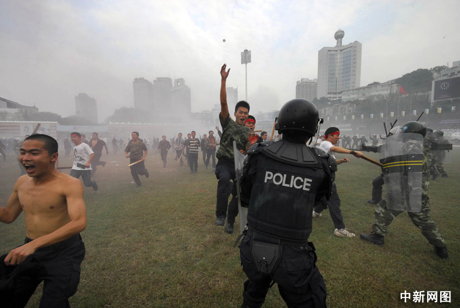 23日,推進“平安重慶”建設(shè)突發(fā)事件應(yīng)急演練在該市渝中區(qū)大田灣體育場舉行,重慶各警種突精銳力量重裝登場,將各類事件一一化解。