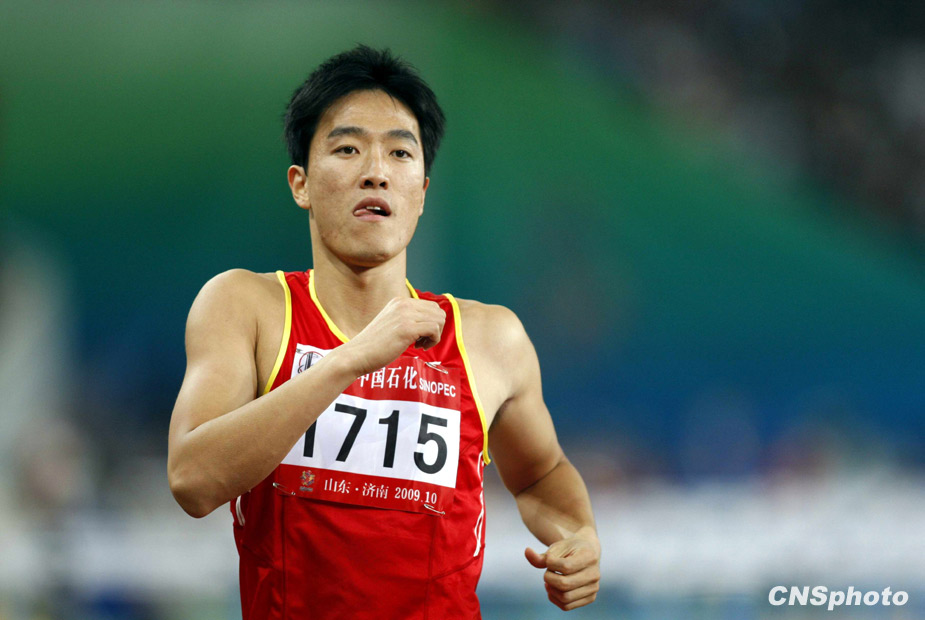 10月24日晚,全運(yùn)會110米欄預(yù)賽在濟(jì)南奧體中心舉行,“飛人”劉翔以13秒75成績輕松晉級決賽。來源:中國新聞網(wǎng)