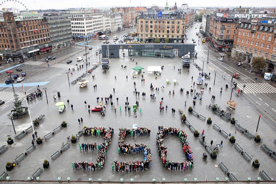 2009年10月24日,當日是350全球應對氣候變化行動日,世界各地的民眾紛紛用自己的方式來表示對全球氣候變化的關(guān)注和擔憂。圖為丹麥民眾組織的活動。