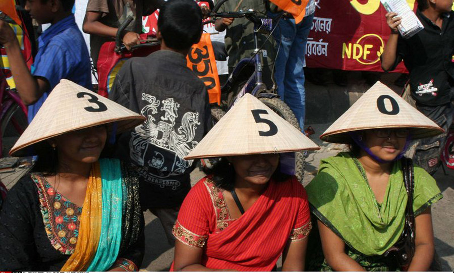 2009年10月24日,當(dāng)日是350全球應(yīng)對(duì)氣候變化行動(dòng)日,世界各地的民眾紛紛用自己的方式來表示對(duì)全球氣候變化的關(guān)注和擔(dān)憂。圖為孟加拉民眾組織的活動(dòng)。