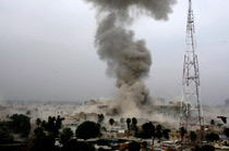 巴格達(dá)市中心25日發(fā)生兩起汽車炸彈爆炸事件,爆炸發(fā)生在早晨上班高峰時(shí)間,死亡人數(shù)不斷攀升,已超過(guò)百人。來(lái)源:中國(guó)新聞網(wǎng)