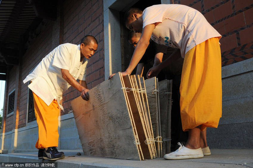 泉州南少林武僧釋理亮借助三合板上演少林絕技“水上漂”,在水面“飛奔”了18米遠(yuǎn)。那么,釋理亮的“水上漂”功夫是如何練成的呢?由于訓(xùn)練刻苦,三合板經(jīng)常被踏出洞來(lái),釋理亮不得不在每次訓(xùn)練前認(rèn)真檢查三合板質(zhì)量。林朝陽(yáng)/CFP