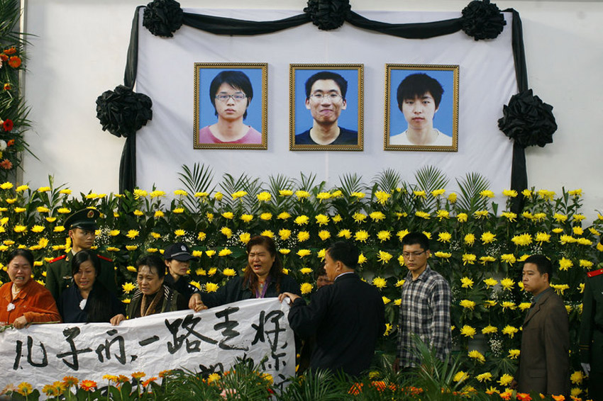 10月28日上午,湖北荊州市在市殯儀館舉行隆重追悼大會(huì),悼念陳及時(shí)、何東旭、方招三位舍己救人大學(xué)生。數(shù)萬群眾趕到追悼會(huì)現(xiàn)場(chǎng),手捧菊花為英雄道別。