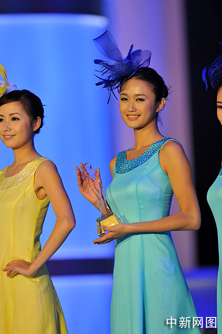 圖為大賽冠軍田桐同時(shí)獲得了最上鏡小姐獎(jiǎng)。