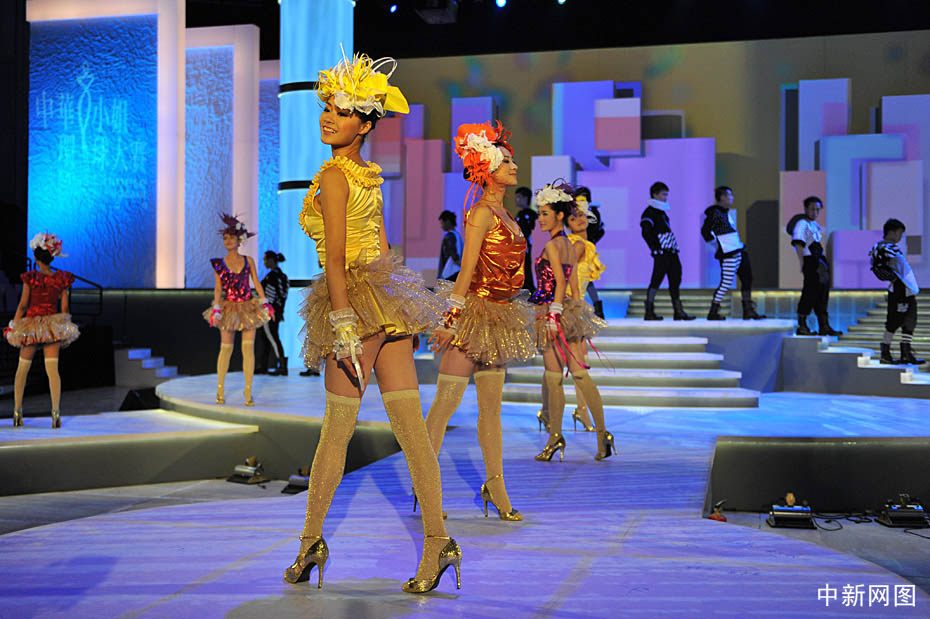 10月31日晚,“2009中華小姐環(huán)球大賽”總決賽上,12名入圍總決賽的佳麗身著迷你裙大秀性感爵士舞。中新網(wǎng)記者 金碩 攝