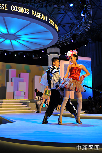 10月31日晚,“2009中華小姐環(huán)球大賽”總決賽上,12名入圍總決賽的佳麗身著迷你裙大秀性感爵士舞。中新網(wǎng)記者 金碩 攝