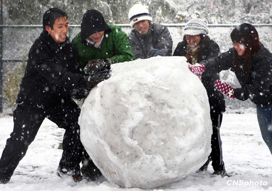 11月1日農(nóng)歷九月十五,尚未立冬的北京受強(qiáng)冷空氣影響大雪紛飛銀裝素裹,幾名來(lái)自赤道印尼的年輕人滾起碩大的雪球享受罕見(jiàn)的雪中樂(lè)趣。受強(qiáng)冷空氣影響,北京從昨天夜間開(kāi)始出現(xiàn)小雨,今天凌晨轉(zhuǎn)為大雪,午后降雪逐漸減弱。根據(jù)過(guò)去50年的數(shù)據(jù)統(tǒng)計(jì),北京地區(qū)常年出現(xiàn)初雪的時(shí)間在每年的11月29日左右,今年的初雪時(shí)間提前了整整一個(gè)月。中新社發(fā) 任晨鳴 攝