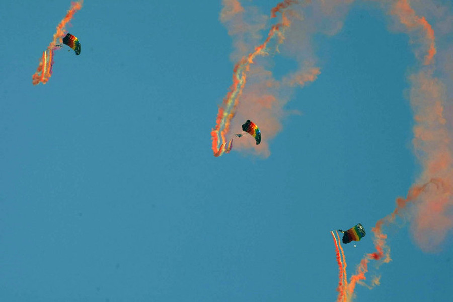 11月3日,空軍八一飛行表演隊和空軍八一跳傘隊在北京沙河機場舉行預演,迎接中國人民解放軍空軍建軍六十周年。