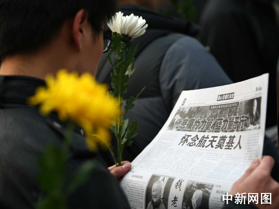 11月6日,“中國航天之父”錢學(xué)森的追悼會在北京八寶山舉行。各界民眾自發(fā)趕來為錢老送行。圖片來源:中國新聞網(wǎng)