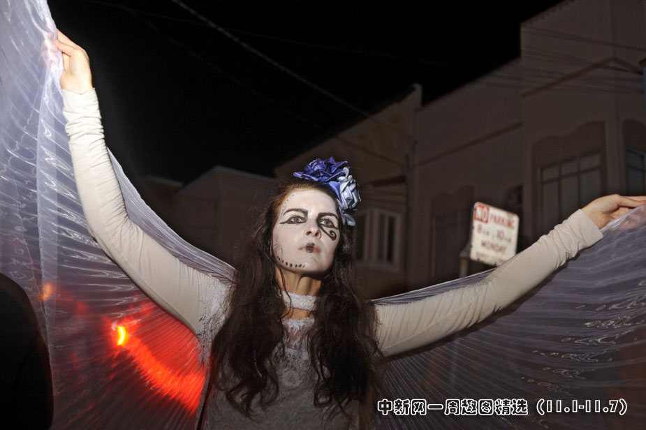 11月2日,美國舊金山居民扮成鬼怪模樣慶祝“亡靈節(jié)”。>>點(diǎn)擊觀看詳細(xì)內(nèi)容