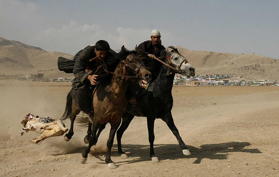 11月6日,阿富汗首都喀布爾舉行傳統(tǒng)的“馬背叼羊”比賽。圖片來(lái)源:中國(guó)新聞網(wǎng)