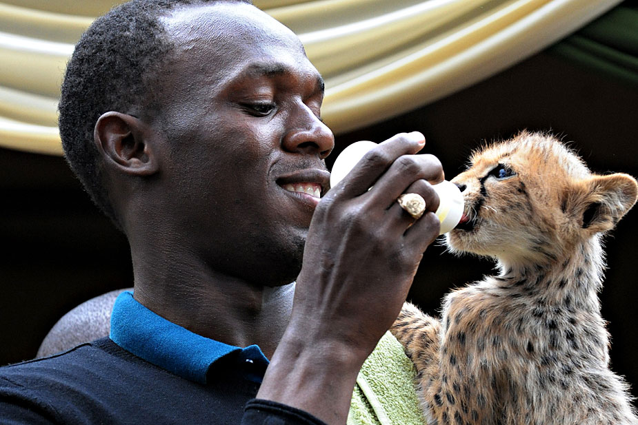 周一(2日),牙買(mǎi)加“飛人”博爾特在肯尼亞野生動(dòng)物中心收養(yǎng)了一只3個(gè)月大的小獵豹,并給其取名為“閃電博爾特”。來(lái)源:中國(guó)新聞網(wǎng)