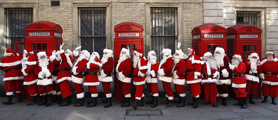 周三(4日),圣誕老人在英國倫敦排隊打電話。來源:中國新聞網(wǎng)