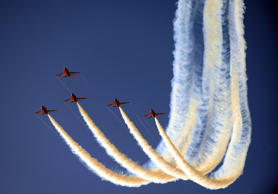 圖為紅箭飛行表演隊進行表演。