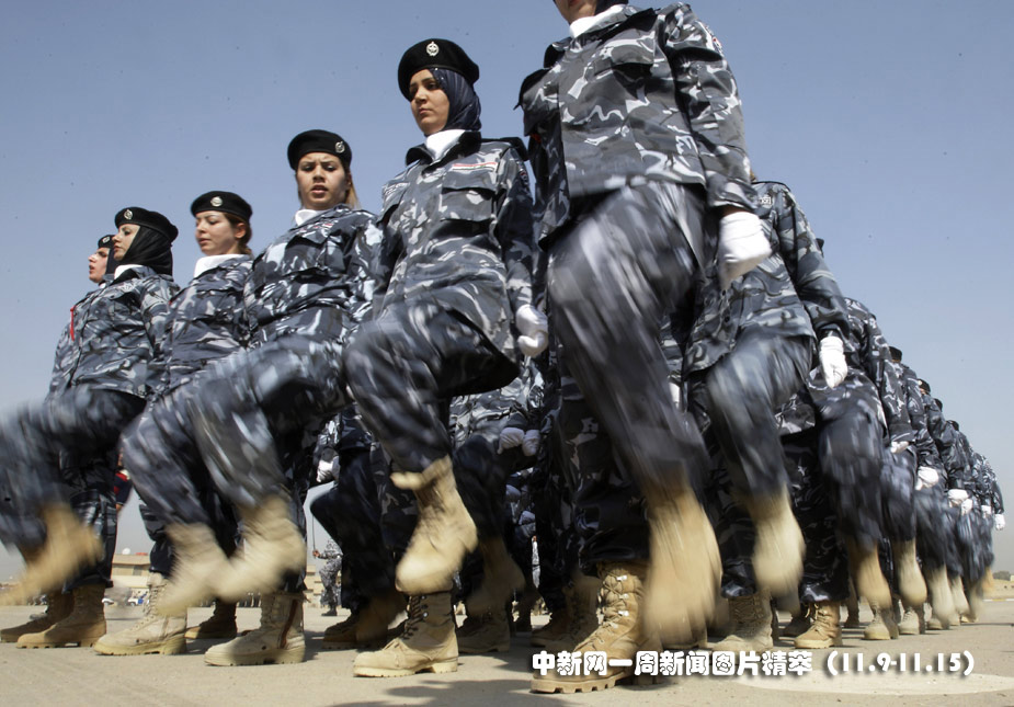 9日(周一),美國(guó)培訓(xùn)的新一批伊拉克警務(wù)人員,經(jīng)過(guò)專(zhuān)定的警察科目培訓(xùn)后正式畢業(yè),其中還包括50名女警察。她們將參加巴格達(dá)的警察部隊(duì)。圖片來(lái)源:中國(guó)新聞網(wǎng)