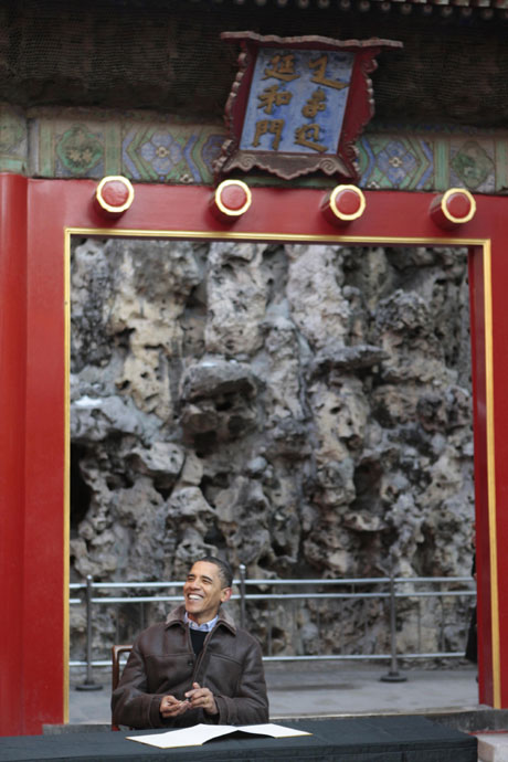11月17日,正在中國進行國事訪問的美國總統(tǒng)奧巴馬一行參觀北京故宮。